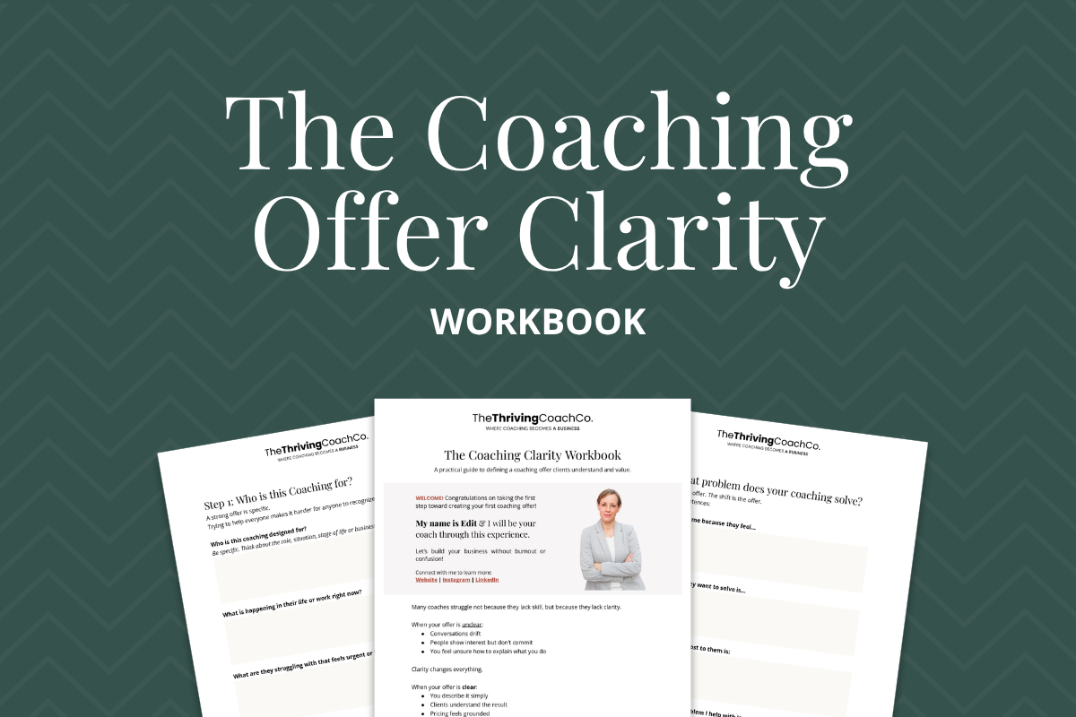 This Coaching Offer Clarity Workbook helps you create a structured coaching offer clients understand, value, and say yes to. Use it to clarify your niche, define your offer, improve your coaching messaging, and build a coaching business with confidence.
